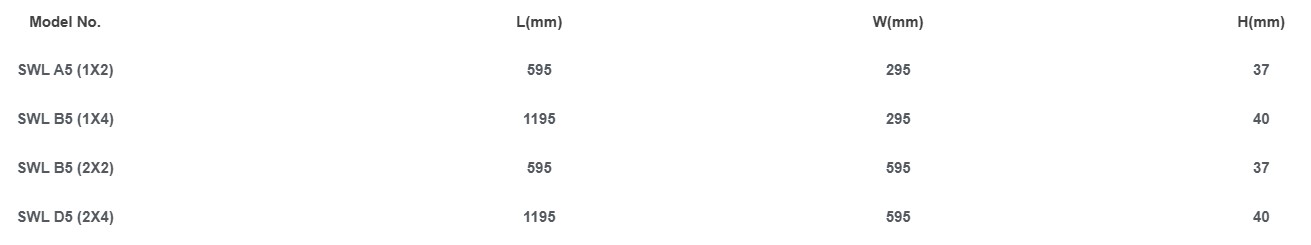 Designed for recess mounting ceiling. LED double row panel light highlighting the use of a new generation of low power and high power LED as light source. Higher transmittance with special diffusion additives. Greater diffusion with better lamp hiding.